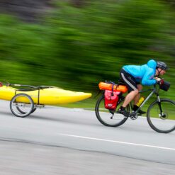 Trailer-Platform, 580 x 380 mm, 16″ wheels, carrying load 45 kg, weight 6,4 kg, with Lollipop Elastomer hitch and 1 hitch bracket, incl. Flag/Light holder, Velcro straps and IGUS axle bearings.